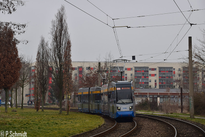 zwischen Sportforum & Lindenau Bushof. Zusätzlich die Buslinie
