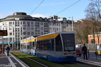 Heute fuhren erstmals 1107+935 nach erfolgter Hauptuntersuchung zusammen auf Linie 1. 935 war der letzte Original Leipziger NB4 der eine Hauptuntersuchung erhielt. Somit sind nun 901-938 alle zum Typ 68a umgebaut wurden und dürfen somit am NGT8 (Typ 36a) fahren. Die ex. Rostocker NB4 939-943 werden noch ein paar Jahre im gelben Lack fahren, bevor diese zur Hauptuntersuchung müssen.