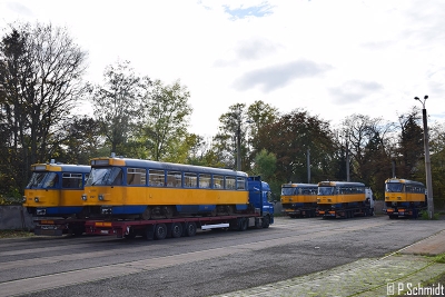 Gestern wurden weitere 5 Tatratriebwagen für Dnipro in der Ukraine verladen. Darunter sind die zuletzt abgestellten T4D-M 2127, 2130, 2143, 2177 und 2178. Die 5 Triebwagen sind heute im laufe des Tages abgefahren.