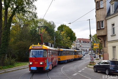 Bild: 1800 holte die Triebwagen 2127+2130 aus dem Hist. Straßenbahnhof WIttenberger Straße ab.