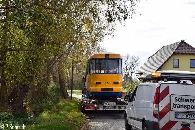 Bereits gestern wurde der Beiwagen auf einen Tieflader aufgeladen und für die heutige Fahrt vorbereitet. Über die Autobahn, Bundesstraßen und zahlreichen kleinen Dörfern mit engen Gassen ging es in den Landkreis Leipzig ins DTEC. Dort können Einsatzkräfte alle Art auf besondere Lagen wie Terroranschläge und Amokläufe vorbereitet werden, es können außerdem Auslandseinsätze in Krisen und Kriegsregionen nachgestellt werden. Neben alten Gebäuden, Autowracks und diversen Geländeflächen kann man nun auch Geiselnahmen in einer Straßenbahn üben.
