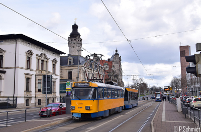 Bild: 2186 am letzten Einsatztag auf der Linie 8 am Neuen Rathaus