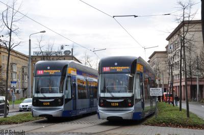 Heute vor 5 Jahren am 06.12.2011 wurden als kleines Nikolausgeschenk die Fahrzeuge 1225 und 1226 Feierlich in den Liniendienst übergeben. Zuvor wurden sie in der Messekehre präsentiert. Anfangs hatte die 3. Serie am Heck einen Banner, der zeigen sollte das es ein neues Fahrzeug ist. Die Neuen fuhren anfangs nur auf der Linie 11.