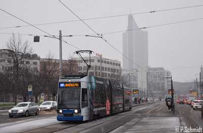Auch der NGT8 1115 trägt eine Vollwerbung von SAE Mediencampus Leipzig.