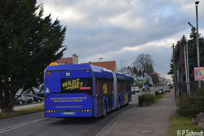 Seit heute trägt der Solaris Urbino 18 eine Vollwerbung für Wildz.net. Besonders bei dieser Vollwerbung ist die linke Fahrzeugseite, die komplett Beklebt wurde. Auf der Türseite sind die Fenster ohne Beklebung. Die Front hingegen ist leider nicht beklebt wurden, so fällt die Fahrzeugwerbung weniger auf.