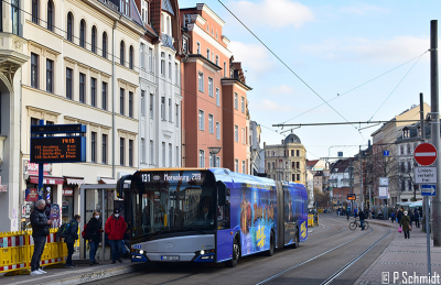 Seit heute trägt der Solaris Urbino 18 eine Vollwerbung für Wildz.net. Besonders bei dieser Vollwerbung ist die linke Fahrzeugseite, die komplett Beklebt wurde. Auf der Türseite sind die Fenster ohne Beklebung. Die Front hingegen ist leider nicht beklebt wurden, so fällt die Fahrzeugwerbung weniger auf.