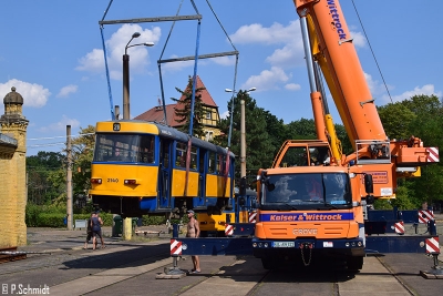 Heute wurden weitere 8 Tatras für Dnipro im Straßenbahnhof Leutzsch verladen. Bereits gestern wurden mit 2146 die erst kürzlich Ausgemusterten Wagen 2124+2149 aus Paunsdorf nach Leutzsch verbracht.