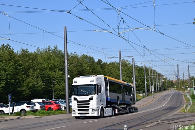 Heute wurden 10 ausgemusterte Urbino 12 von Heiterblick in Richtung Süddeutschland gefahren. Die Busse fahren aus eigener Kraft zum Transporthändler, werden dort auf LKWs verladen um nach Thessaloniki gefahren zu werden.