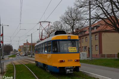 Seit dem 11.04.2016 ist der T4D-M 2123 auf Probefahrten im LVB-Netz unterwegs.