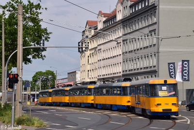 Heute wurden vom Straßenbahnhof Paunsdorf die Tatratriebwagen 2152, 2140, 2152 und der B4D-Nf 792 in den Historischen Straßenbahnhof Wittenberger Straße überführt. Die 3 Triebwagen konnte man vor kurzer Zeit noch im Linienverkehr sehen. Durch den Einsatz weiterer NGT10, Fristabläufen und dem Coronafahrplan geht nun die Schrittweise Tatraausmusterung dieses Jahr sehr schnell. Neben den 3 Triebwagen aus Paunsdorf stand bereits 2154 einige Zeit in der Wittenberger Straße. Der B4D-Nf 792 wurde bereits am 06.09.2017 ausgemustert und stand in der Zeit im Betriebshof Paunsdorf als Ersatzteilspender bereit.