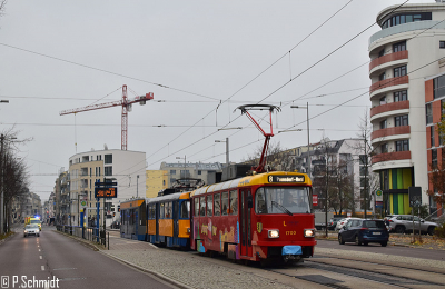 Nach langer Zeit konnte man heute den Triebwagen 1700 mit 2105+938 zusammen auf Linie 8 im Einsatz sehen. Da die NGT10 Flotte weiterhin unzuverlässig fährt und immer mehr Fahrzeuge Schadhaft sind, muss der Gläserne Leipziger im Notfall mit aushelfen. So könnte man die zwei Triebwagen auch in den nächsten Tagen weiterhin im Linieneinsatz sehen, sofern sich beim NGT10 Mangel nichts ändert.