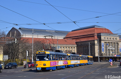 Gefahren zur Anreise wurde die Linie 4E ab Wilhelm-Leuschner-Platz via. Hbf. zur Schleife Feuerbachstraße. Zum Abreisetransport sind die Einheiten ab Feuerbachstraße zur Hauptbahnhof/Westseite gefahren. Rückzu als Linie 4 zur Gohlis, Landsberger Straße.