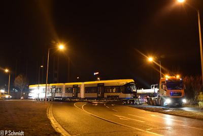 In dieser Nacht wurde der NGT10 1002 vom Messegelände nach Heiterblick ins Technische Zentrum überführt. Dort wird er in den nächsten Wochen für die Inbetriebnahme vorbereitet. Der Abtransport war dieses Mal durch den Regen ein Problem, durch den aufgeweichten Boden fuhr der Schwertransport sich stellenweise fest und es mussten Spezialmatten und Stahlplatten auf den Wiesen verlegt werden.
