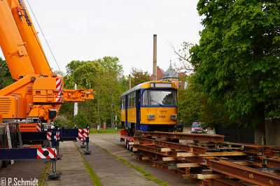 Heute wurden im Strbf. Leutzsch wieder Tatrawagen für die Stadt Dnipro in der Ukraine verladen. Es handelt sich um die T4D-M1 2101, 2104, 2111, 2118, 2175, 2188, 2195. Die Fahrzeuge waren bisher in den Betriebshöfen Heiterblick, Paunsdorf und Wittenberger Straße abgestellt und wurden betriebsbereit gehalten. Dnipro wollte die Fahrzeuge schon eine ganze Weile, konnte aber wegen des Kriegs weder bezahlen noch holen lassen. Die Tatras ersetzen dort Fahrzeuge älteren Fabrikats, werden dort umgespurt sowie umlackiert und bekommen Dachluken sowie Matrixanzeigen. Insgesamt gehen 26 T4D-M bis Sommer in die Ukraine.