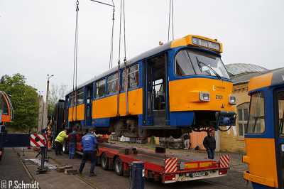 Heute wurden im Strbf. Leutzsch wieder Tatrawagen für die Stadt Dnipro in der Ukraine verladen. Es handelt sich um die T4D-M1 2101, 2104, 2111, 2118, 2175, 2188, 2195. Die Fahrzeuge waren bisher in den Betriebshöfen Heiterblick, Paunsdorf und Wittenberger Straße abgestellt und wurden betriebsbereit gehalten. Dnipro wollte die Fahrzeuge schon eine ganze Weile, konnte aber wegen des Kriegs weder bezahlen noch holen lassen. Die Tatras ersetzen dort Fahrzeuge älteren Fabrikats, werden dort umgespurt sowie umlackiert und bekommen Dachluken sowie Matrixanzeigen. Insgesamt gehen 26 T4D-M bis Sommer in die Ukraine.
