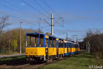 Dazu kam heute der T4D-M Schlepptrakt 2105+2062 zum Einsatz, der den Wagen vom Typ 35 durch das Leipziger Streckennetz schleppen durfte.