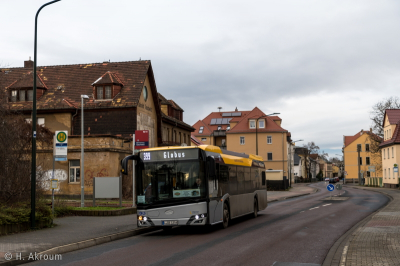 Bild: Letzter Einsatztag für die Dienstagsroute. 12320 bedient die Haltestelle Gaschwitz, S-Bahnhof.