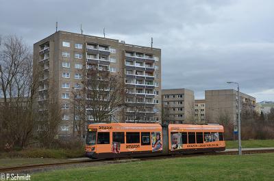Der Wagen 1340 wurde diese Woche mit eine Vollwerbung für 10 Jahre Amazon Leipzig beklebt und konnte heute das erste mal mit der Werbung im Linieneinsatz gesichtet werden.