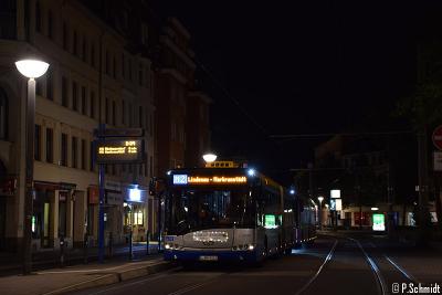 Eingesetzt werden mittlerweile größtenteils Gelenkbusse um dem Anspruch des Wachsenden Leipzigs gerecht zu werden. Im April diesen Jahres wurden auf die Linien N10 und N17 eingeführt die als Straßenbahn verkehren. Die N10 fuhr in dieser Form schon eine Weile als Linie 10 Freitag und Samstagnacht.