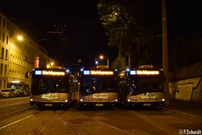 In der heutigen Nacht wurde das Jubiläum 20 Jahre Nightliner gefeiert. Dazu wurden 3 Busse zur Erkennung geschmückt. In der Nacht vom 29.08.1998 auf den 30.08.1998 fuhren erstmals die Nightliner N1-N9. Damals mit Stammfahrzeugen des Typs MAN NL 202 die extra mit einer Nachtbuswerbung ausgestattet wurden. Die Abfahrten erfolgen seit jeher um 1:11, 2:22, 3:33 Uhr ab Hauptbahnhof. 2006 kamen dann noch Freitag und Samstagnacht die „Babynightliner“ dazu mit den Abfahrten 1:45 Uhr und 3:00 Uhr. Von 2004 bis 2013 fuhr die Linie N10 nach Zwenkau, anfangs sogar mit Zwenkauer Fuhrpark.