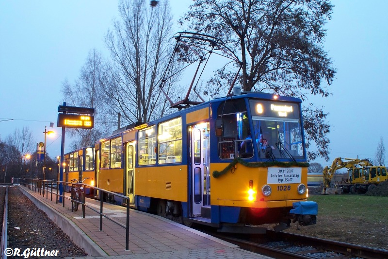 Zum Beginn der sächsischen Sommerferien am 23. Juli 2007 wurden alle Fahrzeuge der Typen T6A2 und B6A2, ausgenommen die Tw 1023, 1024, 1025 und 1028 sowie die Bw 812 und 814, abgestellt. Die genannten Fahrzeuge befanden sich ebenfalls vom 21. Juli bis einschließlich 2. September 2007 nicht im Linieneinsatz, aber gelangten ab dem 3. September 2007 mit dem Beginn des neuen sächsischen Schuljahres in den Einsatz auf den Linien 8 und 14 zurück. Von da an waren diese Fahrzeuge von Montag bis Freitag noch einmal gelegentlich im Linieneinsatz zu erleben. Nachdem am 30. September 2007 eine vom „Leipziger Freundeskreis Nahverkehr“ e.V. organisierte Abschiedssonderfahrt mit allen noch betriebsfähigen Fahrzeugen dieses Typs als Großzug stattgefunden hatte, fand am 30. November 2007 unter reger Anteilnahme der Leipziger Straßenbahnfreunde, Straßenbahnfahrer sowie den Managern und Leitern der LVB der letzte Linieneinsatz statt. An diesem Tag kamen die mit einer Girlande sowie einem Abschiedsschild versehenen Einheiten 1025+1024 sowie 1028+814 auf je einem Kurs der Linie 8 zum Einsatz. Anschließend wurden auch diese noch im Einsatzbestand befindlichen Fahrzeuge auf der Freiabstellfläche des Straßenbahnhofs Paunsdorf abgestellt.